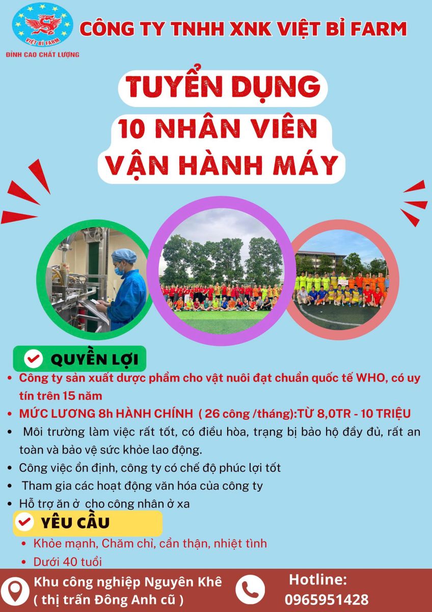 Địa điểm làm việc: Khu công nghiệp Nguyên Khê (Thị trấn Đông Anh cũ), Hà Nội.