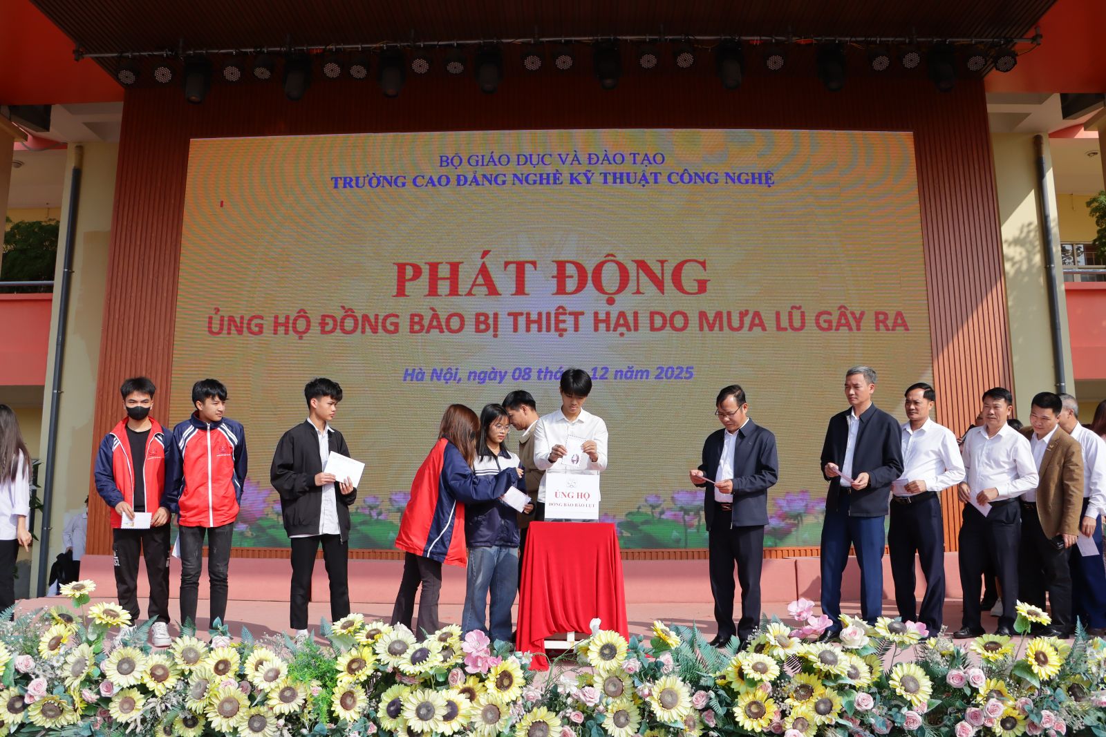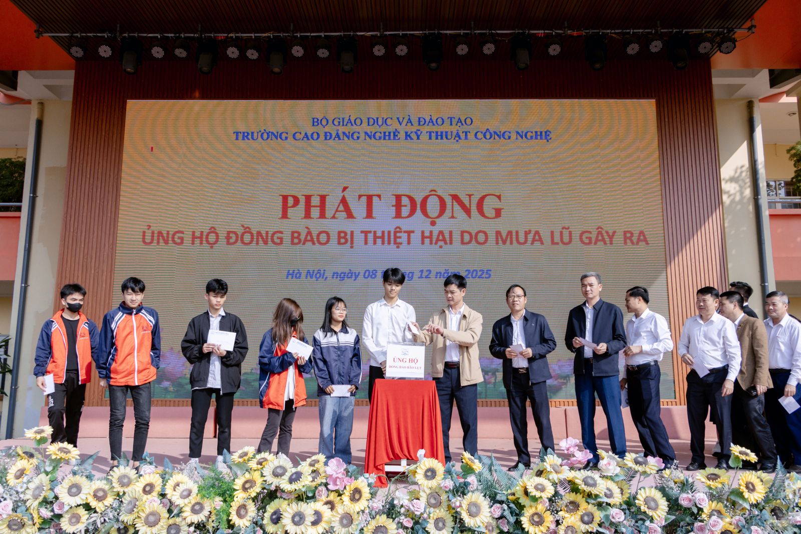 Sáng ngày 08/12/2025, Trường Cao đẳng nghề Kỹ thuật Công nghệ đã tổ chức Lễ phát động ủng hộ đồng bào bị thiệt hại do mưa lũ gây ra, hưởng ứng Lời kêu gọi của Ủy ban Trung ương Mặt trận Tổ quốc Việt Nam và Công văn số 25/MTTQ-BTT ngày 22/11/2025 của Ủy ban MTTQ Việt Nam TP Hà Nội về việc vận động ủng hộ đồng bào vùng bị thiệt hại do mưa lũ gây ra.